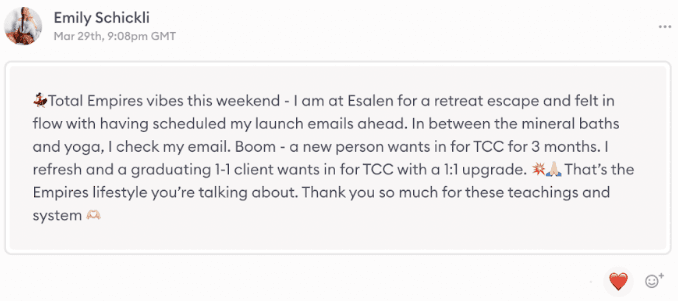 My EMPIRES business program uncovers, packages, and sells your deepest expertise into a profitable, low-stress business—in just 16 hours a week.